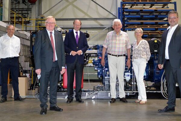 Stehen für Versorgungssicherheit: Daniel Hagemeier (Mitte), flankiert von Bernd Burchert, Uli Mietke, Alexander Löseke und Firmengründer Hubert Tippkötter (von links)